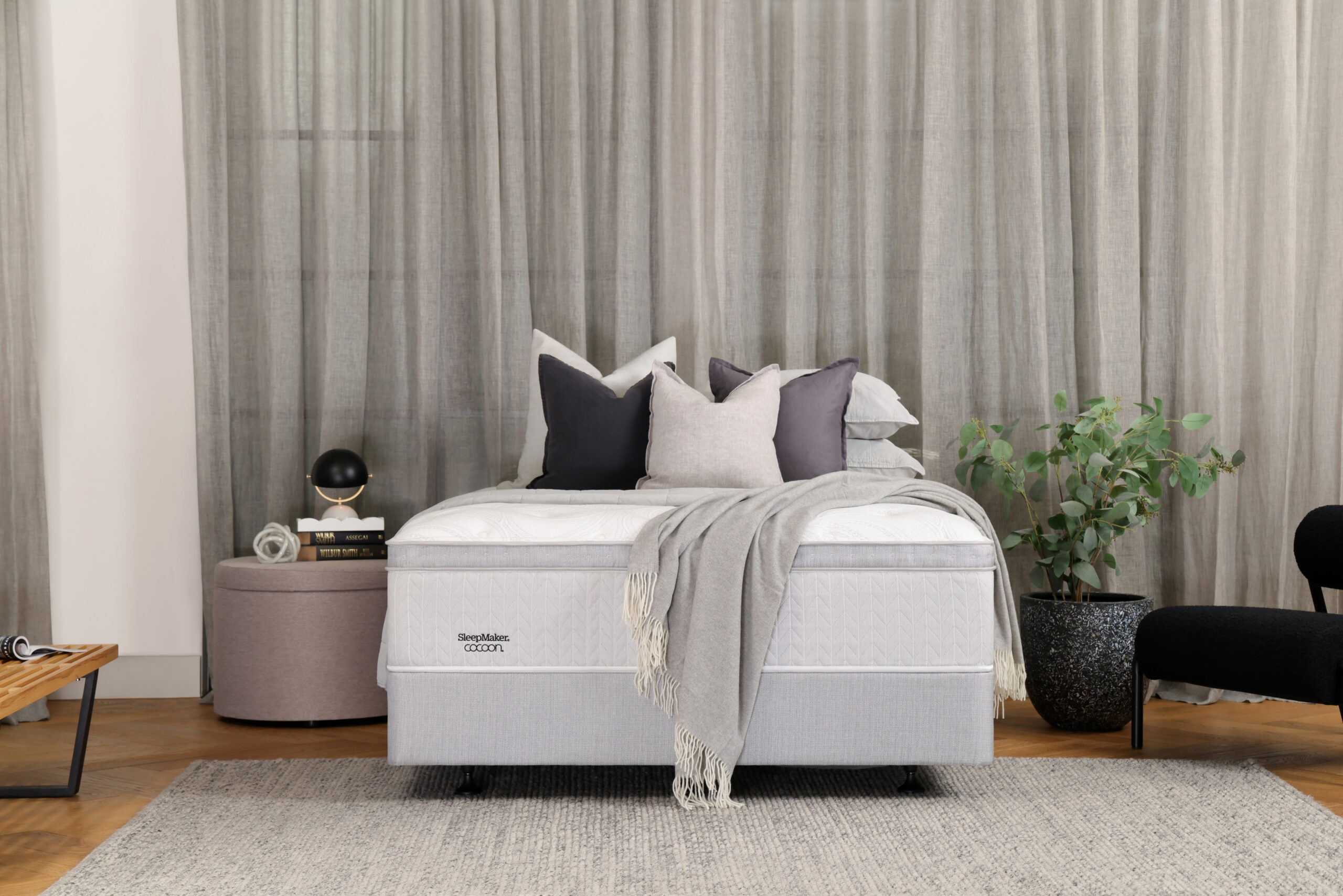 Experience the pinnacle of relaxation with a luxurious night’s sleep. The SleepMaker Cocoon® Pearl, crafted with innovative Sensorzone® technology and luxury materials, ensures every night feels like a dream come true. The Darwin (medium feel) and Rutherglen (plush feel) both feature a solid foam edge that provides support right to the edge of the mattress, and KulKote temperature regulating technology that manages your body temperature by absorbing excess heat. With environmentally friendly Dreamfoam® for full support and a high loft fibre natural wool for breathability, you’ll have your best night’s sleep yet. The SleepMaker Cocoon® Pearl incorporates Fusion: Copper into its pressure-relieving memory foam, delivering an unparalleled layer of premium comfort. Copper, aside from helping to fight against bacteria and keep your mattress fresh and clean, is highly conductive and helps move heat away from the body to provide a more comfortable and cooler sleep surface. Immerse yourself with a sleep surface enriched by cashmere materials, offering supreme softness, warmth, and a touch of luxury. Proudly endorsed by the Australian Physiotherapy Association.